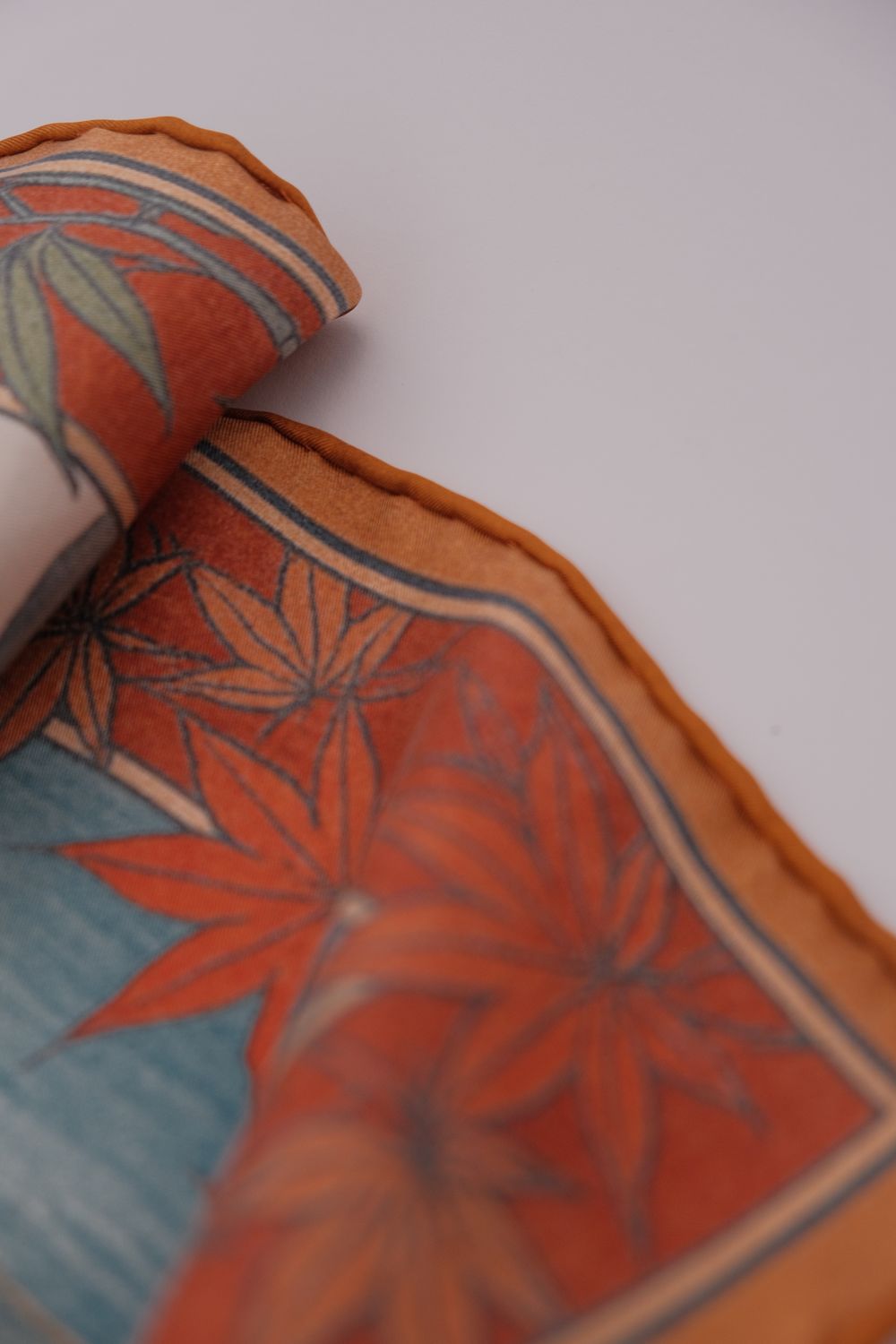 Jedes Tuch ist handgefertigt, die Kanten liebevoll handrolliert. Mit seiner Größe von 40 × 40 cm passt es perfekt in jede Brusttasche und lässt sich klassisch, lässig oder kreativ falten. Ein haptisches wie optisches Highlight – und ein besonderes Geschenk für alle, die Japan, Ästhetik und feine Accessoires lieben.