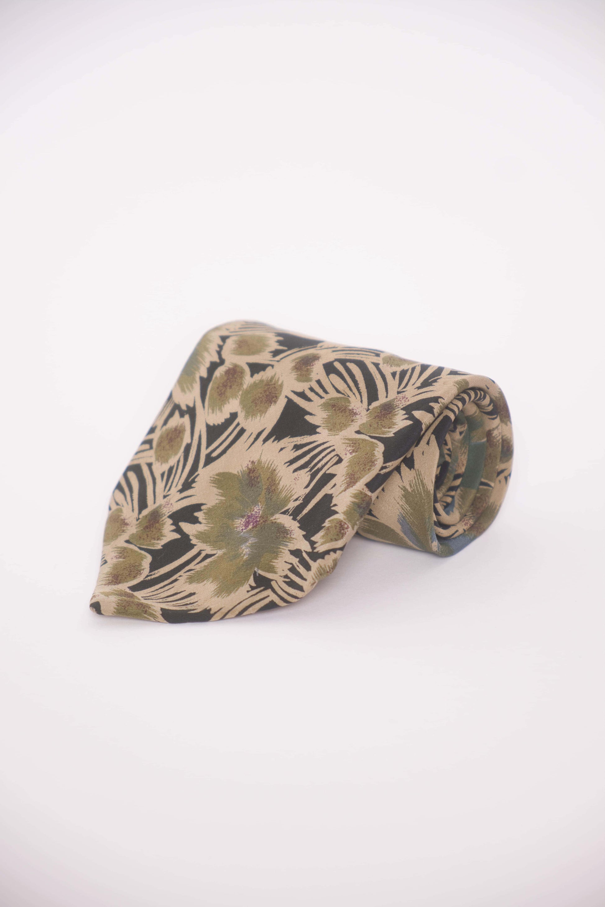 Vintage Krawatten in Schwarz, dunklen Tönen und Beige stehen für Zurückhaltung, Tiefe und klassische Eleganz. Diese Kategorie vereint reduzierte Farben mit klaren Mustern und eignet sich besonders für formelle Looks oder bewusst ruhige Kombinationen.
